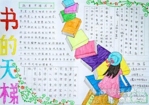 书,就是开启智慧大门的钥匙,是人类文明进步的阶梯。养成爱读书好习惯,踩着书悌成长。手抄报的主要内容:世界读书日的来历、名人读书故事、读书小知识、读书的名人名言。