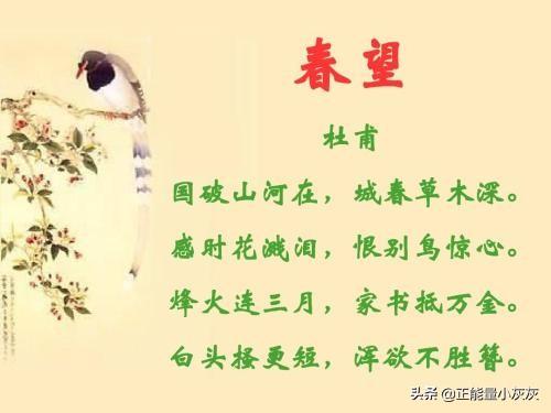 国破山河在,城春草木深.感时花溅泪,恨别鸟惊心.